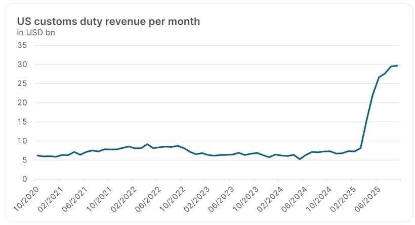 Od začiatku apríla („Deň oslobodenia“) a zavedenia recipročných ciel sa príjmy výrazne zvýšili a pri výške približne 30 mld. USD mesačne by významne prispeli k financovaniu volebných sľubov. Rozhodnutie Najvyššieho súdu o ich zákonnosti a tým aj o ich pokračovaní v súčasnej podobe však stále nie je známe. Kľúčovou otázkou je, či je odôvodnenie národnej núdze (IEEPA, International Emergency Economics Power Act) oprávnené, keďže daňová politika patrí do pôsobnosti Kongresu USA.