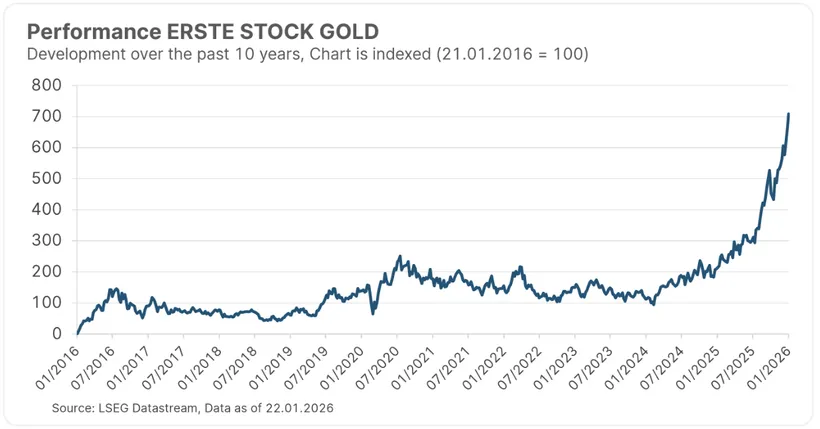 Akciový fond ERSTE STOCK GOLD ponúka možnosť investovať do celého dodávateľského reťazca ťažby zlata s flexibilnou alokáciou kapitálu. Globálna produkcia zlata v roku 2024 bola približne 3 300 ton, pričom dominovali krajiny ako Čína, Rusko, Austrália a Kanada. Akciový fond sa zameriava na rôzne oblasti spoločností zapojených do ťažby zlata:
